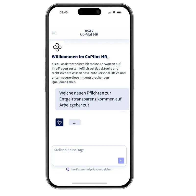 - Öffnen Sie den CoPilot HR unter hr.copilot.haufe.ai im Browser Ihres Smartphones.